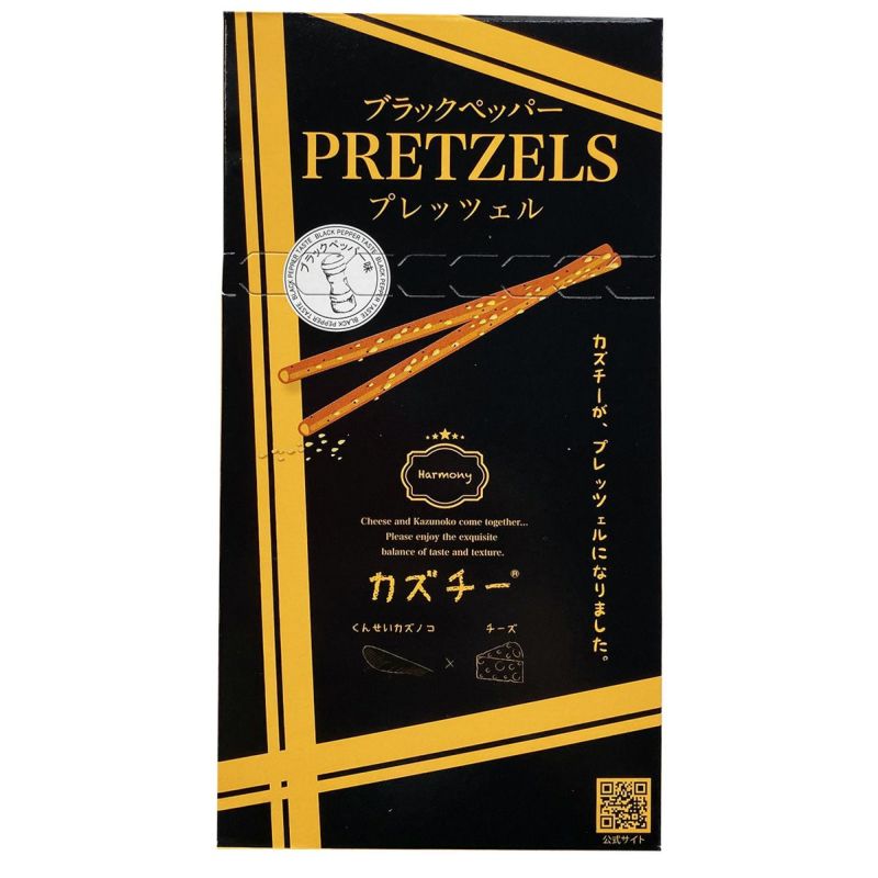 「カズチー」を生地に練り込んだ濃厚風味の「カズチープレッツェル」にブラックペッパー味が登場。ブラックペッパーの爽やかな辛さがより一層お酒に合う大人のプレッツェルです。