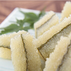 天然の子持ち昆布に、上品な白醤油で味付けした逸品。ニシンが昆布に卵を産みつけることでできる天然の子持ち昆布を、上品な白醤油で味付けしました。 100%天然物の子持ち昆布は、漁の段階から厳選された、希少価値が高い製品です。